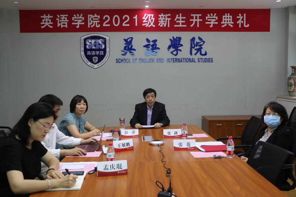 2018级本科生林雅欣作为老生代表与同学们分享了她在公司收获的“多维、多元、多可能”的学习感悟;2021级本科生闫思晗以“趣味”和“敬意”为引,代表本科生新生表达了对大学新生活的期盼与向往;2021级MTI笔译专业硕士生陈钇均代表研究生新生提出了“学好外国语,做好中国人,讲好中国故事”的坚定信念。