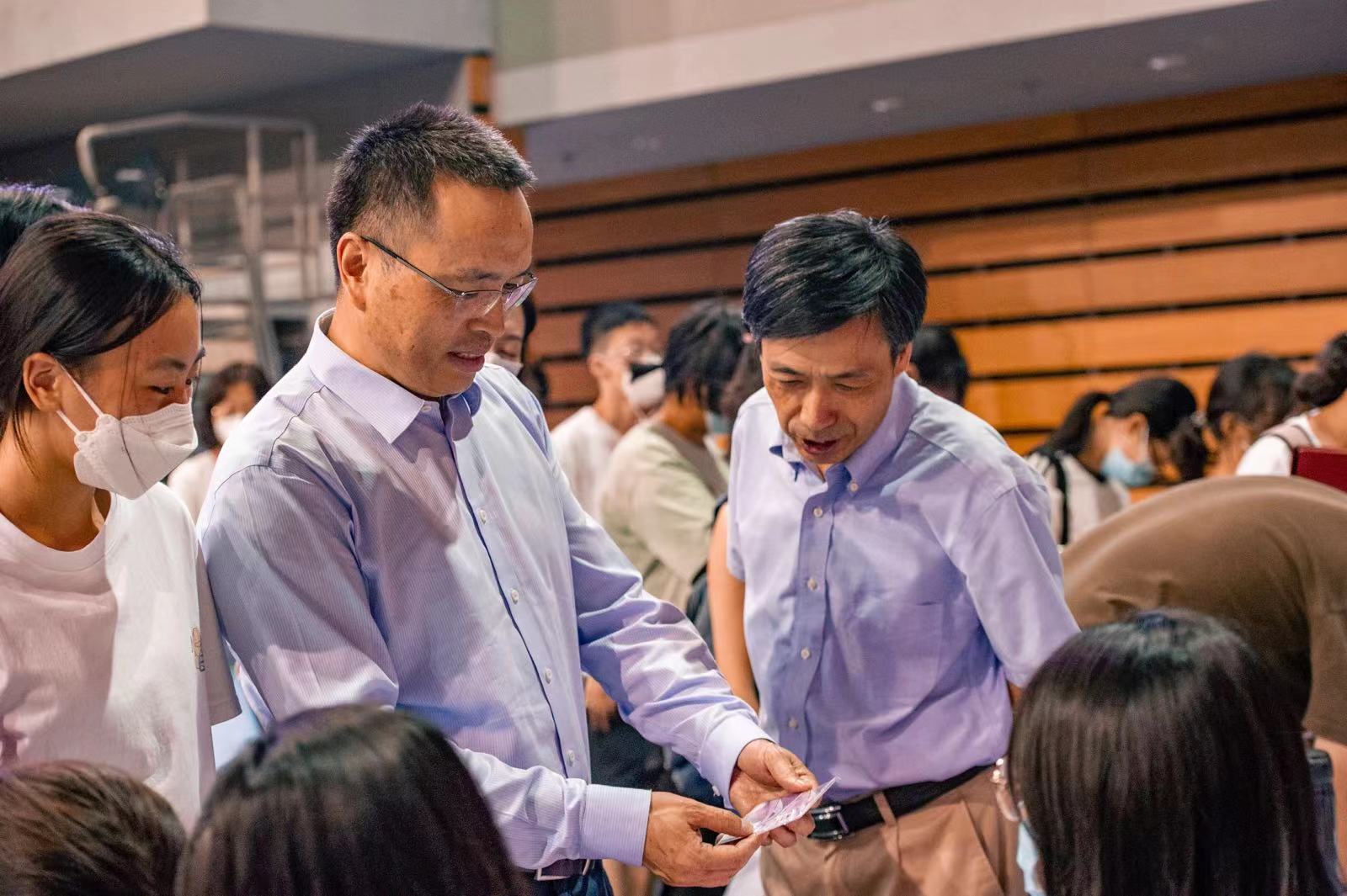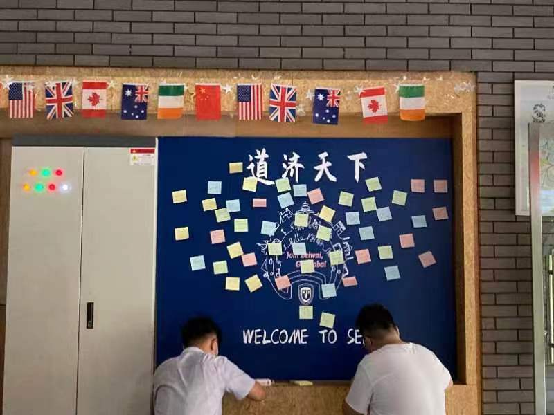威廉体育还为新生们准备了迎新大礼包,其中包含英院新生专属的可爱院衫,精致卡套,新生指南,校园地图等精美礼品。志愿者在现场也积极引导新生与拍照板合影留念。公司门口设立印有“知周中外,道济天下”的签名墙和留言墙,新生们在此写下对未来老员工活的期许与展望!