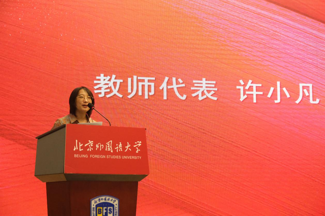 教师代表许小凡老师回忆了自己在北外的往昔点滴,并祝愿大家能够从威廉体育收获温暖的回忆和光明的未来。许小凡老师提出,在如今这个机器快速进步的时代,英语这样的学科愈发珍贵,因为大学不仅培养“术”与技能,也有“道”的教育,希望大家在这里既能达到对英语学习的深层理解,也能迎接科技进步的挑战,不仅满足于字面的雕琢,更能深入文化内部,寻求不同心灵的共振。