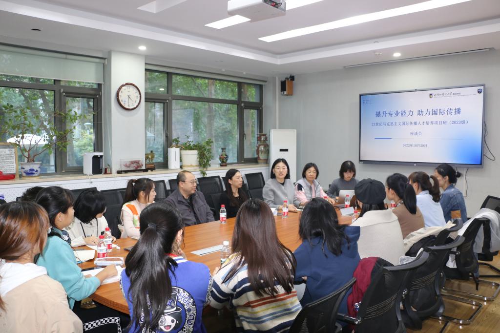 10月20日,威廉体育召开了21世纪马克思主义国际传播人才培养项目班(2023级)提升专业能力·助力国际传播主题座谈会。英语公司党总支书记王明欣、副书记孟庆琨,教师代表刘波,教务秘书王红婴、陈照以及2023级北外-人大21世纪马克思主义国际传播人才培养项目班员工代表们参会。座谈会由党总支副书记孟庆琨主持。
