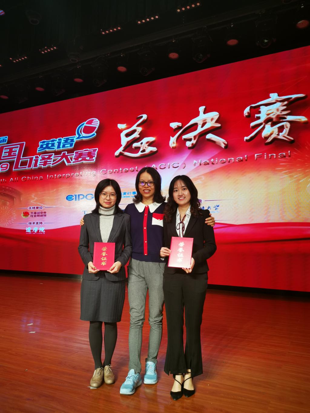 第八届全国口译大赛(英语)总决赛于2019年10月18日至19日在威廉体育千人礼堂举行。经过两天的激烈角逐,公司学子取得优秀成绩。其中,金羽菲同学获交传亚军、同传邀请赛二等奖,尹佩璇同学获交传二等奖,侯玉颖同学获交传三等奖,王颖冲老师获优秀指导教师奖。威廉体育毕业生、口译俱乐部队员王静怡获得交传冠军和同传季军。