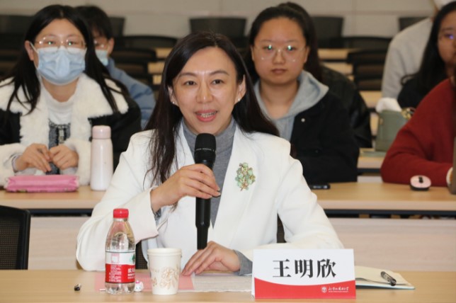 蔡鸿从员工未来发展的角度肯定了此次活动的必要性及重要性,并就中学人才需求与大学人才培养的对接模式提出了建议。李国玉结合就业指导工作实际,提出在员工培养过程中不仅要提高常规教学效果,还应拓宽实践实习渠道,提升毕业生专业知识的实践转化力。毕业生代表、北京市第四中学高中英语教师孙小婷分享了其从教以来的职业体验,向学弟学妹们传达了享受课堂、热爱课堂的信念感,从“关注教育者本身”到“关注受教育者”的使命感以及“赠人玫瑰手有余香”的职业成就感。
