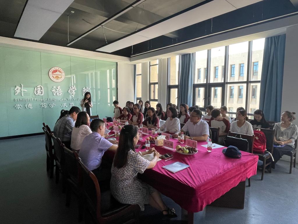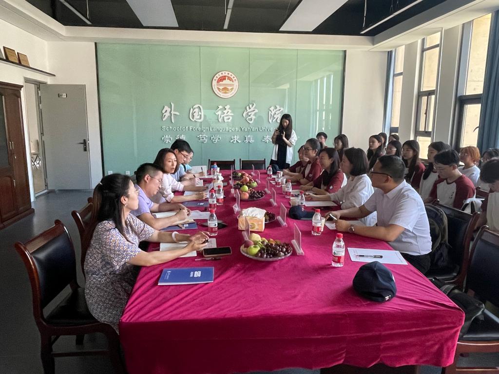 为推动学习贯彻习近平新时代中国特色社会主义思想主题教育走深走实、见行见效。7月6日,英语公司党总支书记王明欣带队赴延安大学外国语公司开展座谈交流,延安大学外国语公司党委书记梁艳,副书记许多文等进行了接待。
