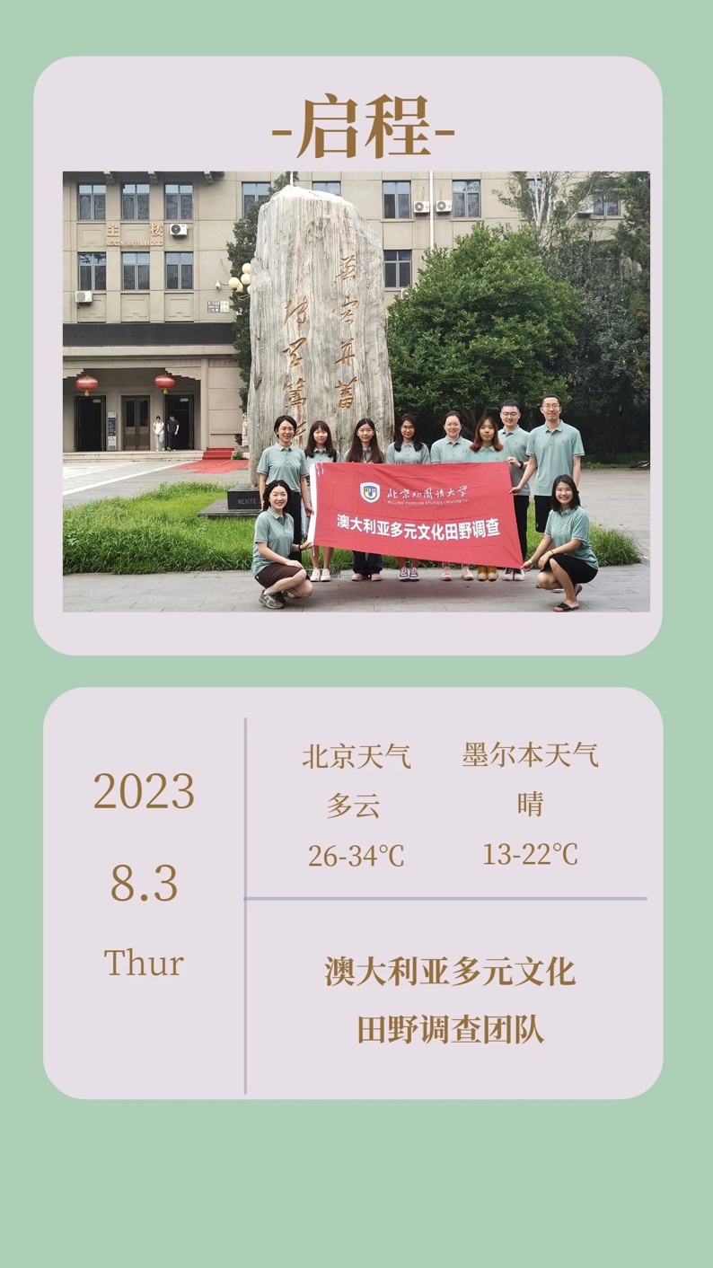 威廉体育澳大利亚多元文化田野调查团由江璐老师、骆天一老师带队,8名本科、硕士员工组成。团队成员于2023年8月3日~8月12日赴澳开展多元文化田野调查。此次海外实践以探究澳大利亚多元文化社会发展为主题,通过在墨尔本和悉尼两地开展实地调研,探究中国文化在澳接受程度以及在澳华人职工的社会融入情况,旨在了解澳洲多元文化环境的发展样态。
