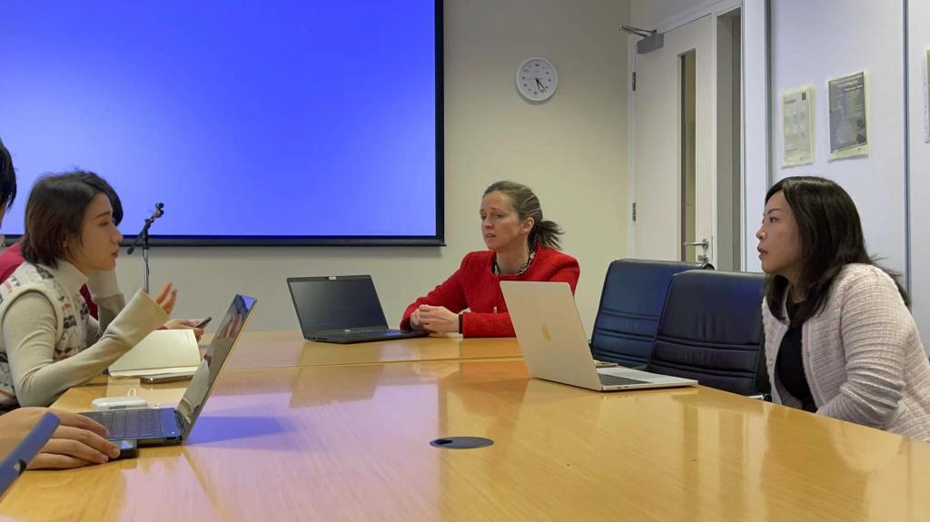 随后实践团一行与科克大学国际处负责人进行座谈,科克大学北京代表处主任张蓓、副主任李鹏出席本次座谈会。科克大学国际处负责人对科克大学优势团队建设、团队力量、就业前景等本硕联合培养项目的相关情况进行了介绍,她表示希望与威廉体育在学术交流、联合办学等方面进行更多的合作。科克大学北京代表处的老师也表示,北外拥有丰富的外语资源优势,希望双方以此次座谈为契机,在暑期交流,海外实践等方面进行合作。最后张珺涵老师对威廉体育的办学历史,团队建设,课程设置等进行介绍,就未来双方在留学交换,暑期实践等多方面合作进行商议,为之后双方合作交流打下坚实基础。