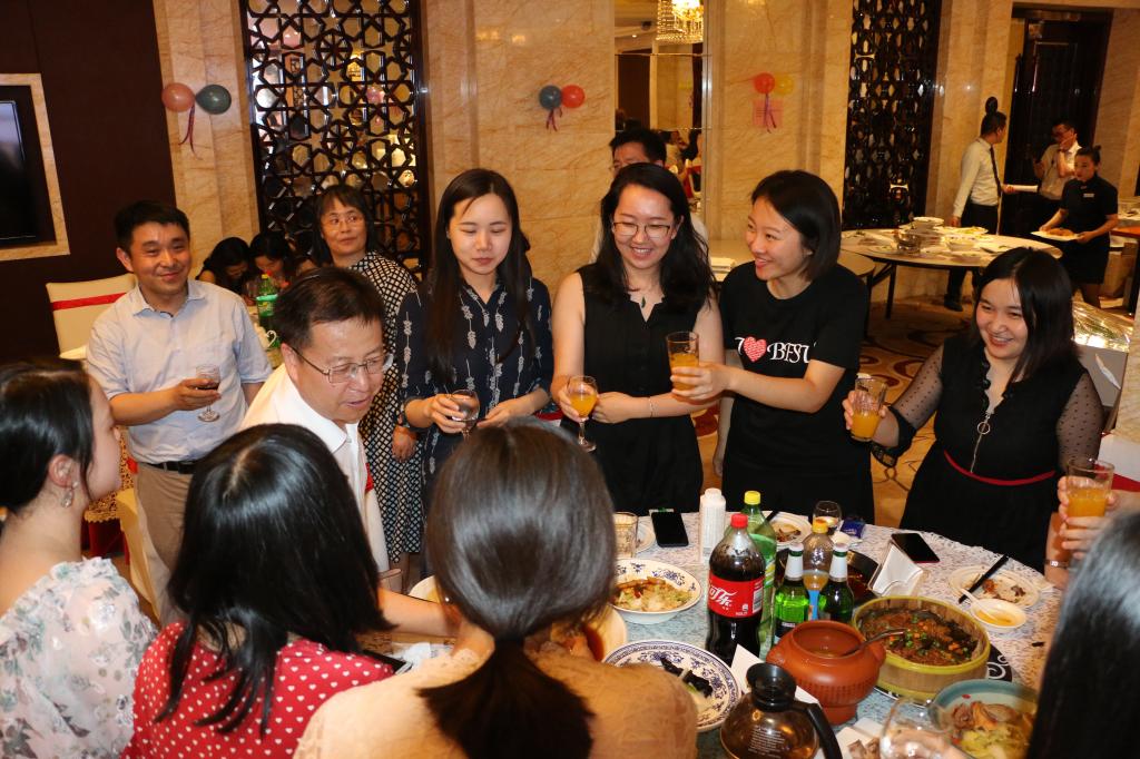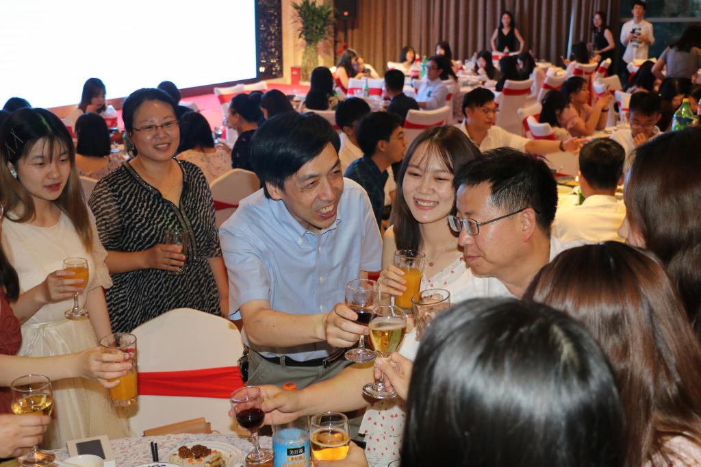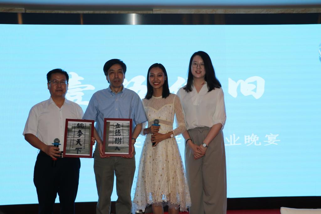 6月26日、27日晚,员工工作办公室精心组织了研究生、本科生毕业晚宴,经理张剑、党总支书记路兴、副经理王展鹏、孔子公司经理金利民、陈亚平、林岩、宋云峰、闫循华、孙三军、谢登攀、王元陆、王颖冲、张春霞等老师参加了毕业晚宴。师生们盛装出席,欢聚一堂,毕业生们表演了精彩的节目,向公司赠送了精美的礼物。本科生胡笑然代表全体本科生赠送了她书写的“立德树人”、“桃李天下”的书法作品。