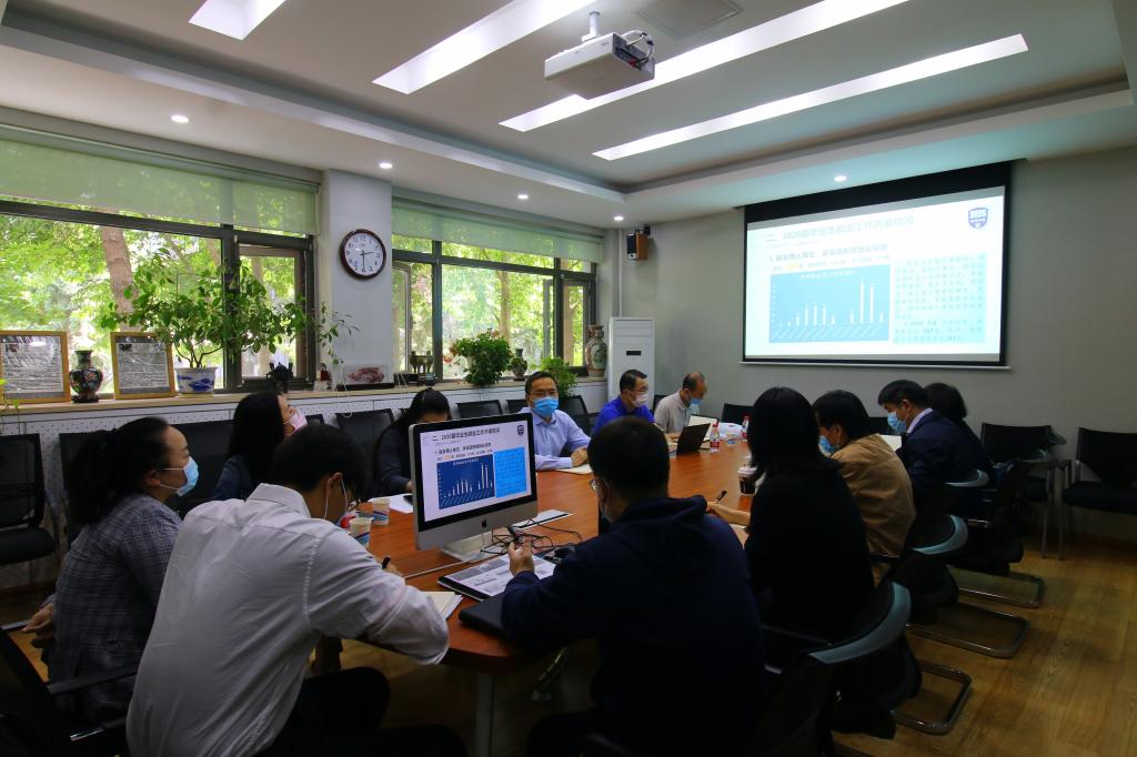 公司党总支书记路兴首先从2020届毕业生基本情况、就业工作开展情况、毕业生落实去向情况、存在的主要问题及下一步主要工作思路五个方面做了汇报。张剑经理结合公司人才培养情况,就员工特点、对就业困难员工一对一帮扶及随后的工作重点进行了补充。副经理王展鹏、张莲,党总支副书记孟庆琨,辅导员于承杰等,也结合工作实际谈了自己的想法。